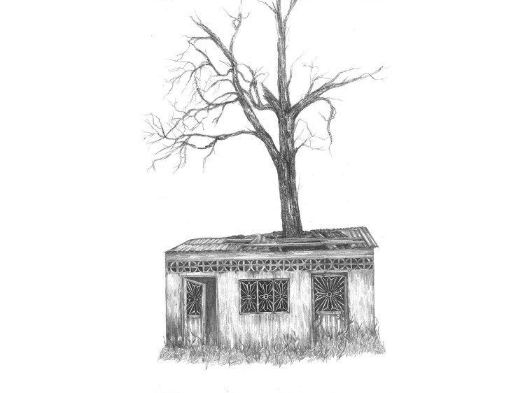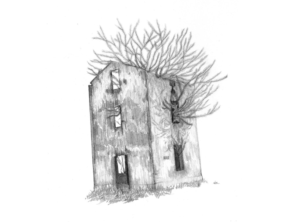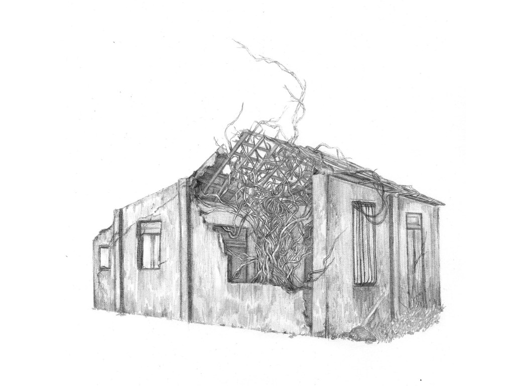 Series of graphite drawings that illustrate abandoned places that arise from the exploration of the refuge space, but not a physical place, but deeply interior, what is contained in the deepest part of being, something generally secret, invisible, impenetrable. However, a place that breaks when the person who inhabits it evolves and grows, leaving a broken skin that must be shed.
