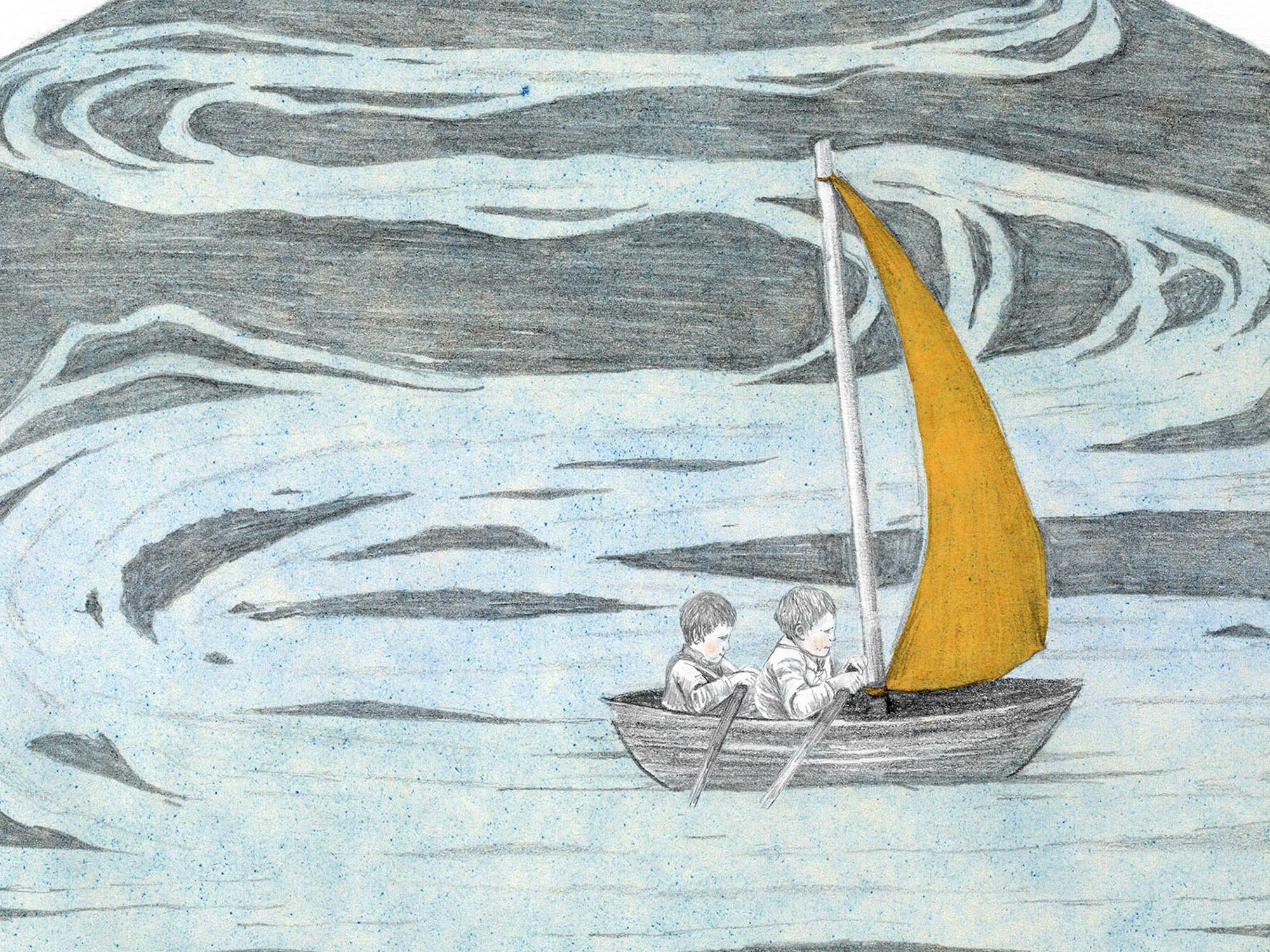 Niños navegando el dibujo