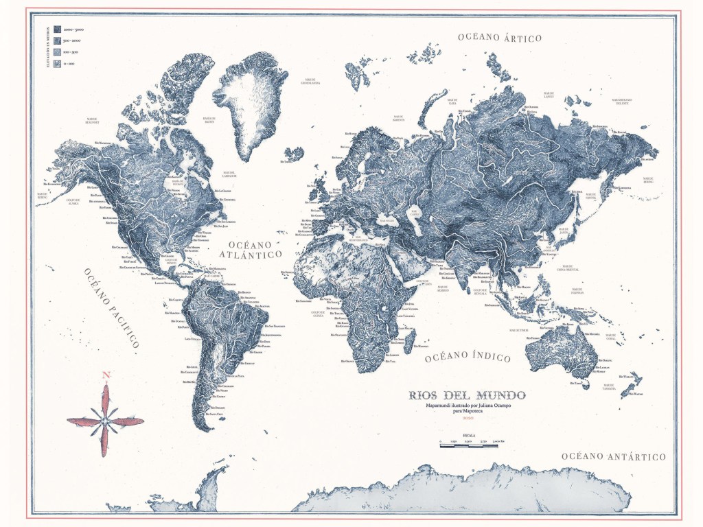 El mapamundi Ríos del mundo reúne más de 200 ríos del mundo.
